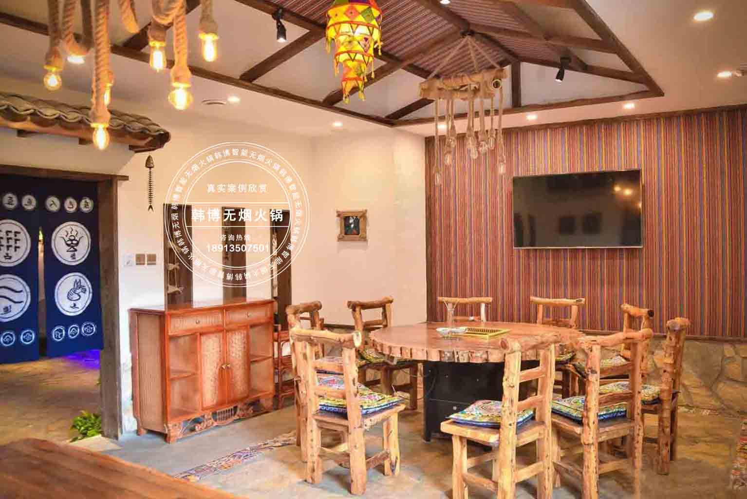 另外其店內裝修也很有特色,店內更是采用了高端的排煙系統-韓博智能無煙凈化系統,火鍋煮沸后冒出的油煙通過這個系統被吸入下方的凈化器凈化,從而吃完火鍋身上也沒有油煙味。